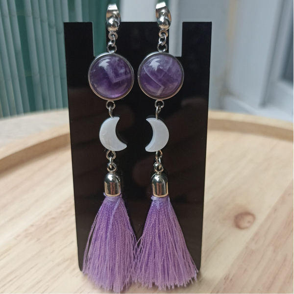 Boucles d'oreilles " Brumes sacrées " - Améthyste